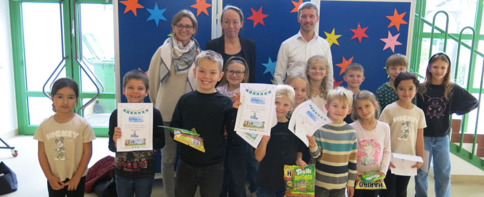 Am Dienstag, den 30.09.25, kamen Frau Hoffmann, Frau Wyrwoll und Herr Müller vom Förderverein in die Schule, um die Leistungen der einzelnen Klassen mit tollen Urkunden zu würdigen und die Klassenkassen ein wenig aufzupeppen.