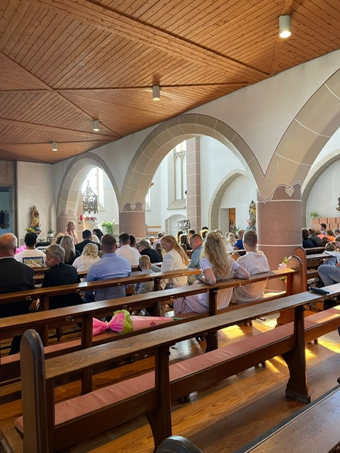 Nach einem schönen Gottesdienst in der Pfarrkriche Sankt Katharina ging es zur Einschulungsfeier in die Aula der Schule. Hier stellte sich jede Klasse wie immer mit