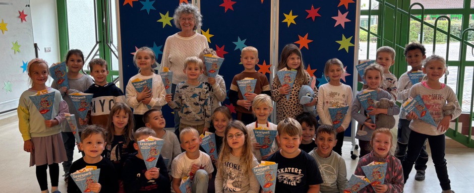 Fast sechs Wochen sind die ErstklässlerInnen der Grundschule Sankt Georg in Sankt Katharinen inzwischen in der Schule und haben schon so einiges gelernt. Am 24.09.2025 wurden sie von besonders nettem Besuch überrascht. Frau Kröger aus der katholischen öffentlichen Bücherei Sankt Michael in Vettelschoß kam mit einem Korb voll kleiner Geschenke in die beiden ersten Klassen. Sie erzählte von der Bücherei und was es dort alles zu entdecken gibt. Alle Kinder lieben es vorgelesen zu bekommen und freuen sich darauf, bald selbst lesen zu können. Die Angebote in der Vettelschoßer Bücherei sind vielfältig und tragen dazu bei, den Kindern die Freude an Büchern und am Eintauchen in fremde Welten zu vermitteln.
