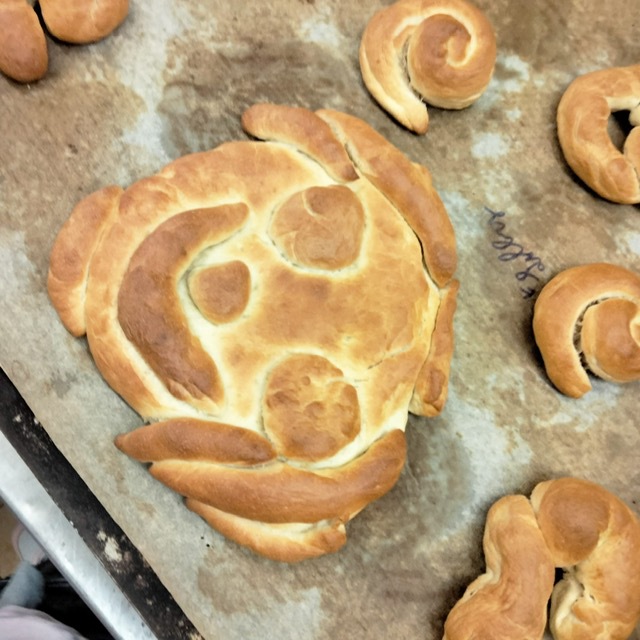 Hefeteig kennen, den sie dann sogar selbst wirken und nach eigenen Vorstellungen formen durften. Schließlich landeten viele kleine Zöpfe, Brötchen, Brezeln, aber auch Schnecken, Schweinchen und