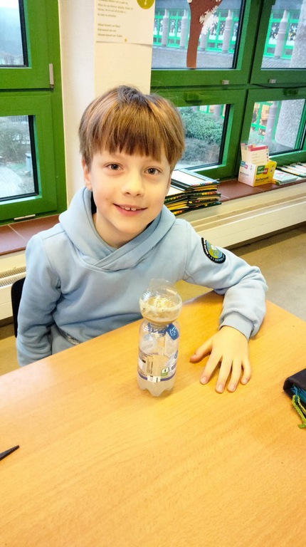 Aber es blieb nicht bei grauer Theorie! Alle Kinder haben eine eigene kleine Filteranlage gebaut. So konnten alle mit eigenen Augen sehen, wie verschmutztes Wasser in der Natur gereinigt wird.